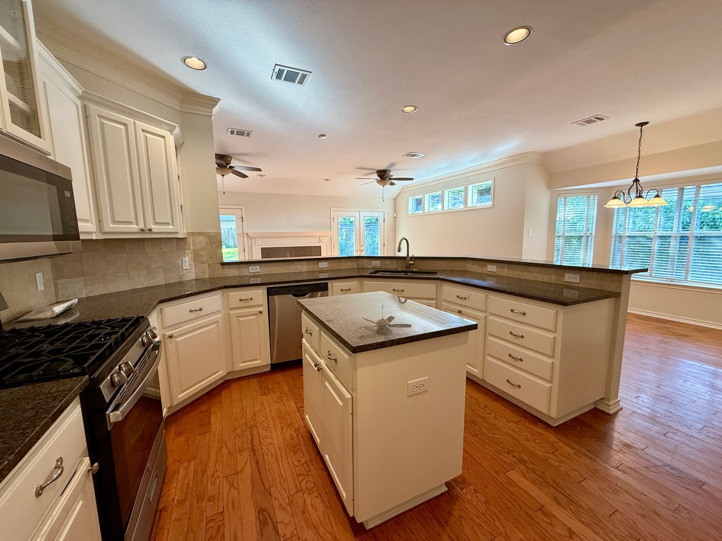 Nestled in the heart of desirable Central Austin, this amazing four-bedroom, two-bathroom home offers a vibrant and comfortable lifestyle! Step inside to discover a bright and open floorplan, perfect for modern living. The very spacious kitchen is a true centerpiece, featuring a convenient island, elegant granite countertops, and recessed lighting, all seamlessly flowing into the inviting living room. Enjoy the fresh feel of new paint throughout the home and the ease of maintenance with NO CARPET. The versatile fourth bedroom offers flexibility as a home office or a fun playroom. This fantastic property also includes a refrigerator, washer, and dryer. Outside, you'll find a huge, incredibly private park-like backyard complete with a delightful outdoor pergola – an ideal space for relaxation and entertaining. A two-car garage and a convenient circled driveway add to the appeal. The location is truly unbeatable, providing effortless access to MOPAC and placing you just moments away from the University of Texas, downtown Austin's excitement, a plethora of retail and restaurant options, the Central Market, and so much more! This Central Austin gem offers the perfect blend of space, style, and an incredible location.