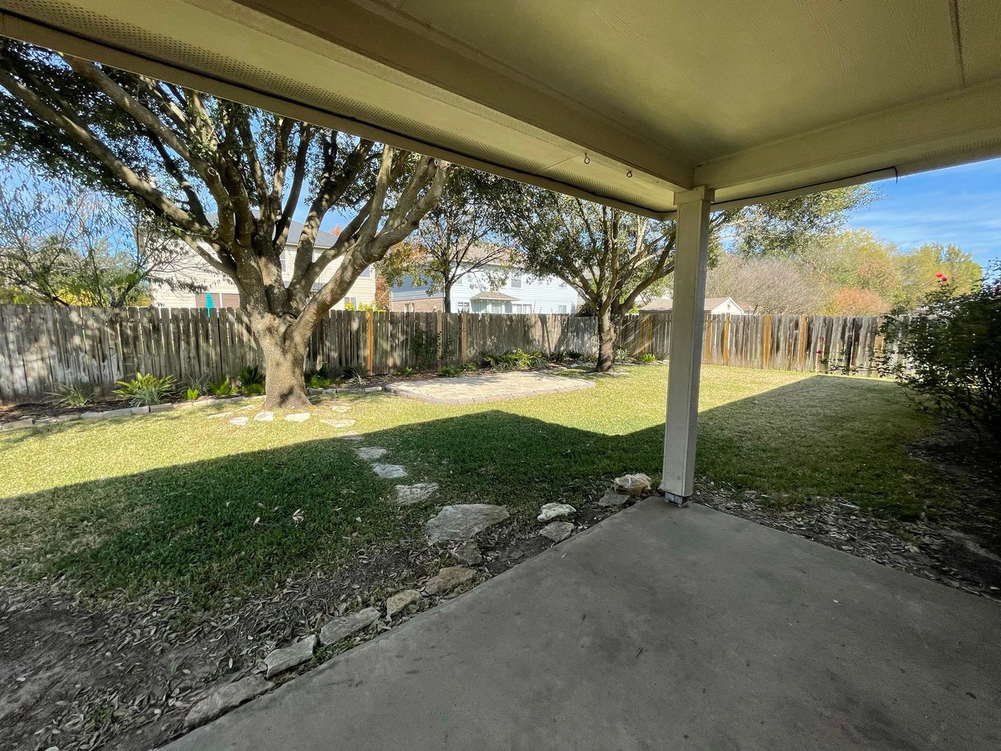 Beautiful single-story home on a quiet street in desirable Vista Oaks Subdivision. 3 bedrooms plus an office that could be used for 4th bedroom or playroom. Open kitchen with an island and plenty of counter space! Spacious living room with a fireplace! No carpet throughout! Lovely backyard with mature trees and covered patio. Exemplary Leander ISD schools!!! Excellent location, close to shopping/dining, major roads, hospitals, etc!