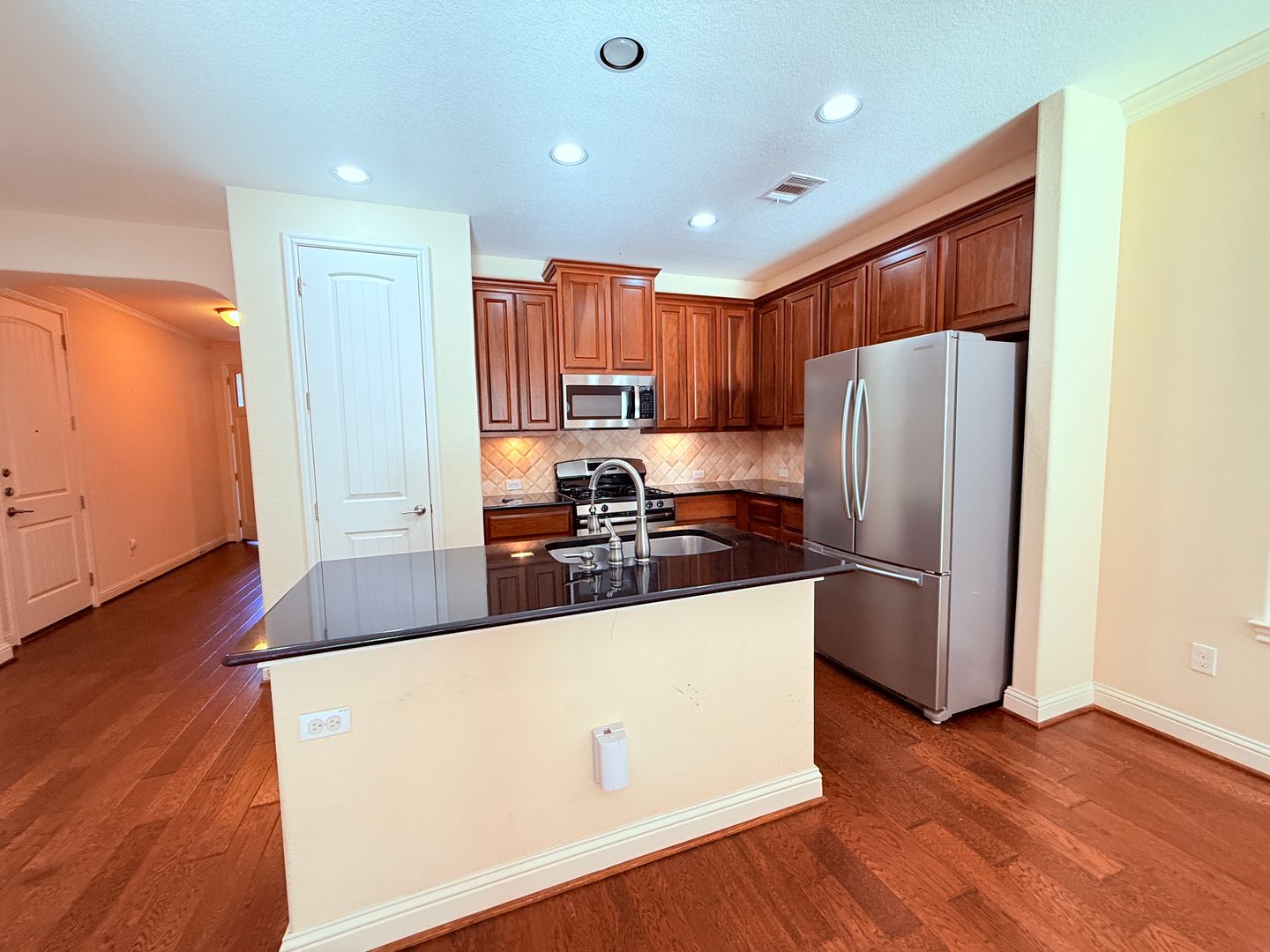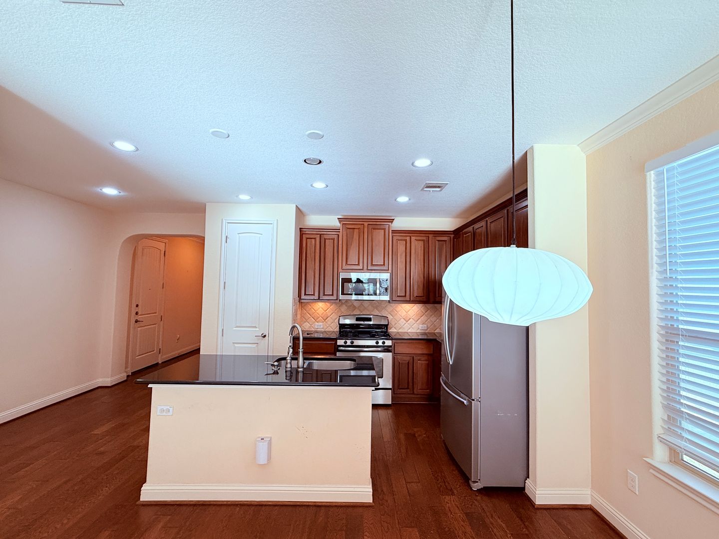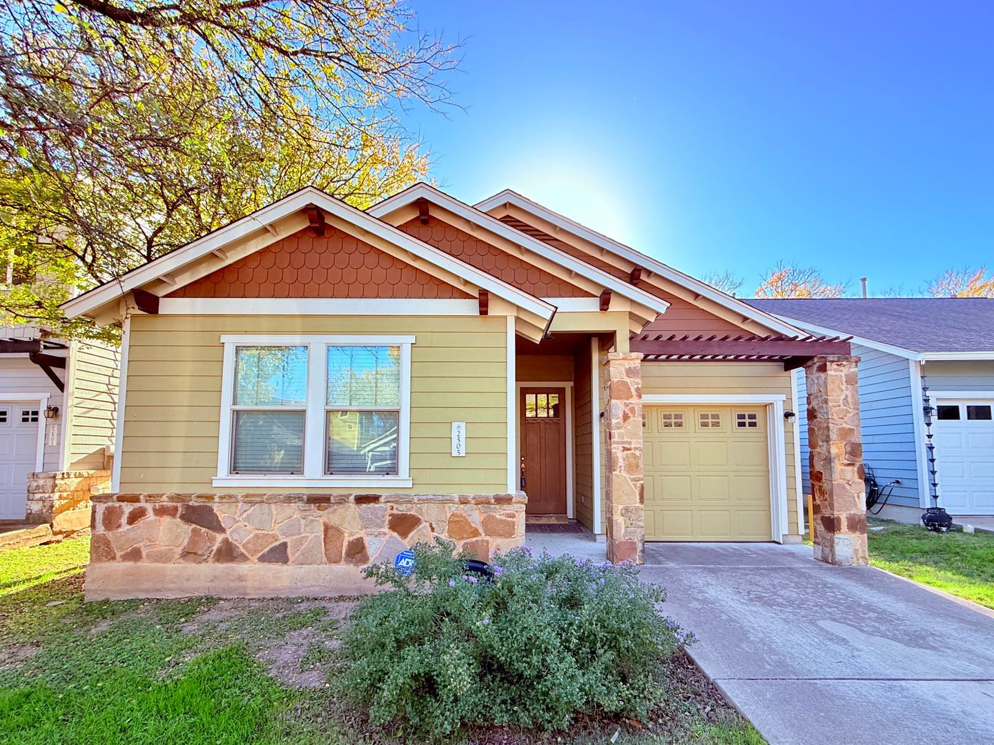 This well-maintained, single-story Craftsman home is perfectly situated on a quiet street and offers a seamless blend of style and comfort. The heart of the home features an open kitchen complete with granite countertops, stainless steel appliances, gas cooking, and a Refrigerator included for your convenience. Throughout the house, you will find beautiful hardwood floors that lead into a spacious living room filled with natural light. The master suite serves as a peaceful retreat overlooking the private, fenced-in backyard. Its ensuite bathroom is equipped with a double vanity, a separate bathtub and shower, and an expansive walk-in closet. For added ease, the home includes a washer and dryer, an attached one-car garage, and front yard maintenance provided by the HOA. Residents can also enjoy nearby neighborhood trails and parks. This excellent location puts you just minutes away from premier shopping, dining, major thoroughfares, and the vibrant energy of downtown.